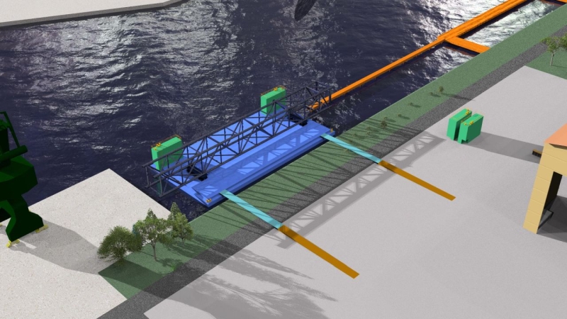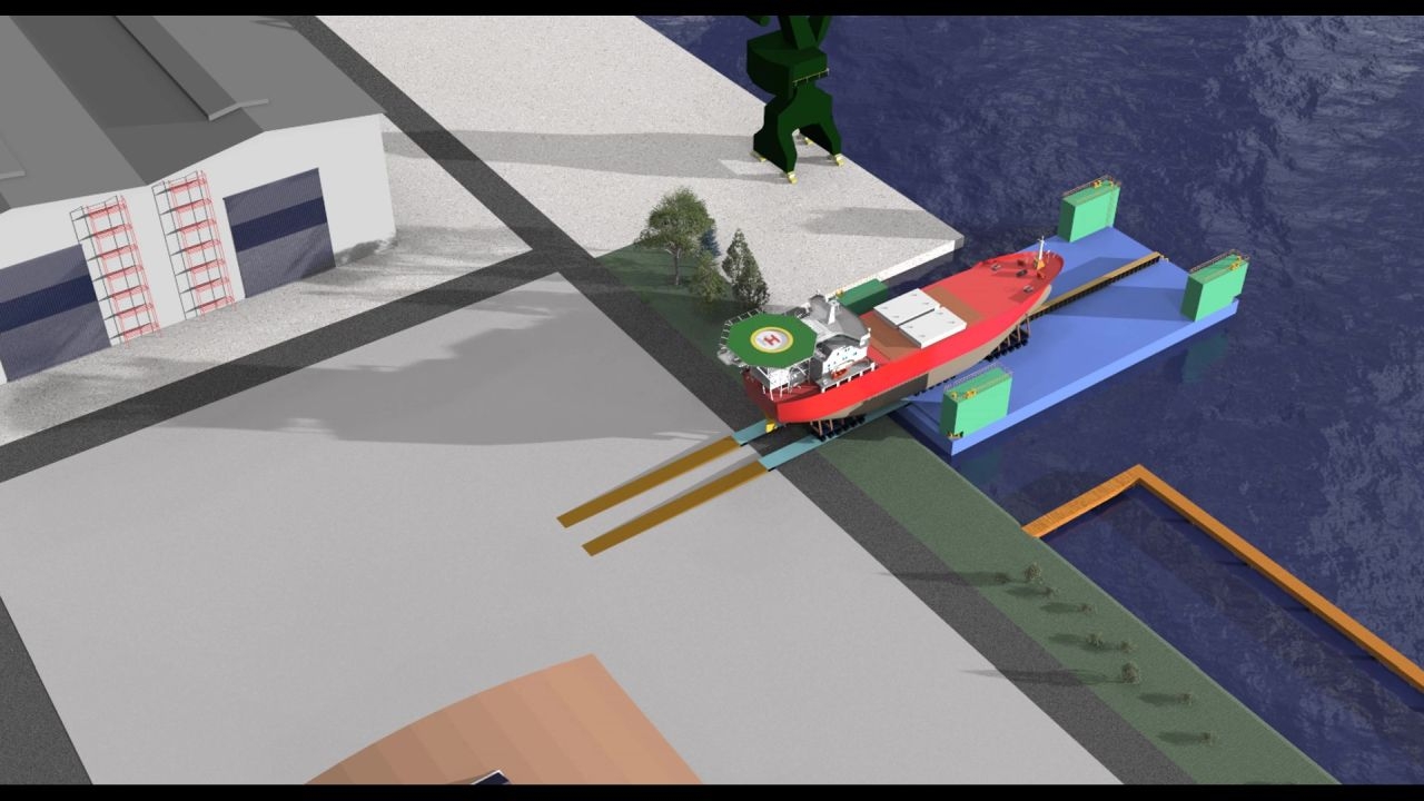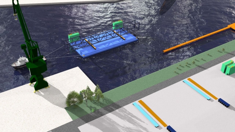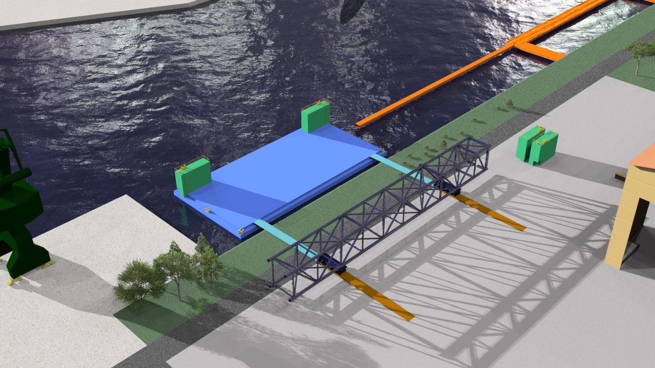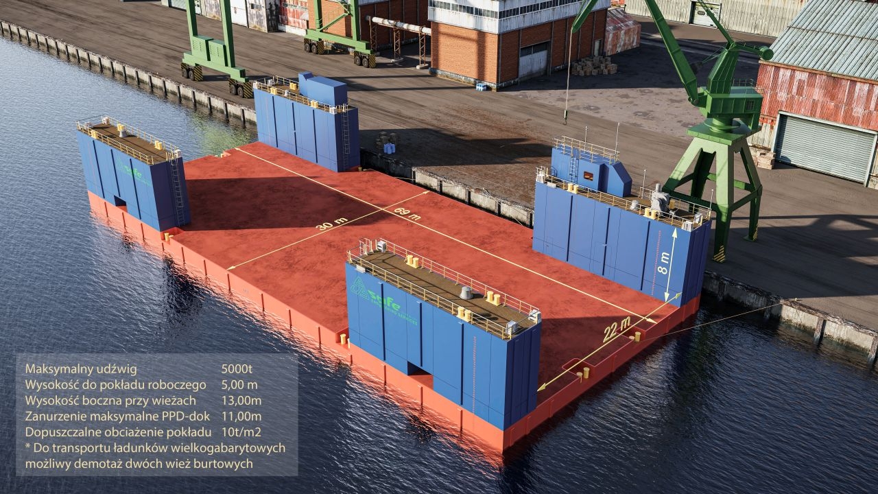 Integralną częścią projektu jest opracowanie rozwiązania informatycznego, algorytmu, który zagwarantuje ciągły monitoring przeprowadzonego procesu obchodzenia się z tymi ładunkami, a także monitoring i dane potrzebne do sterowania systemem balastowym naszego pontono-doku. W tym samym czasie można monitorować to co dzieje się na styku nabrzeża, lądu, a ponton-pływającego.