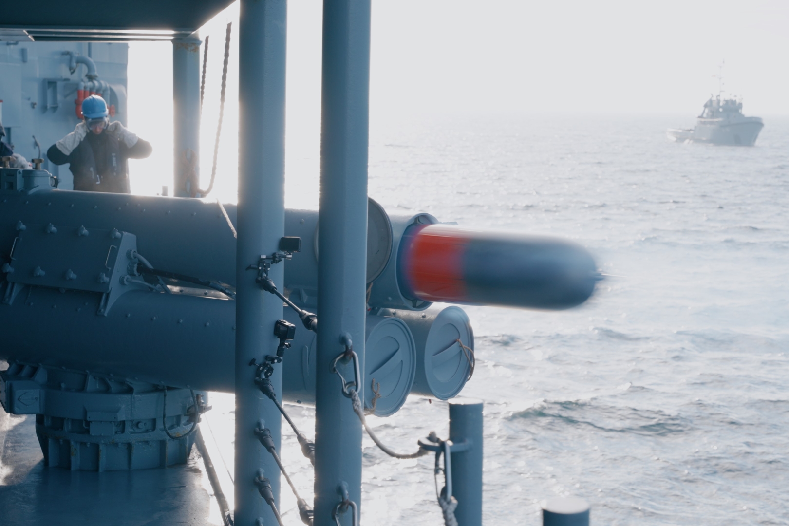 Podczas obserwowanych działań zastosowano ćwiczebną torpedę, która nie posiadała głowicy bojowej. Po przebyciu pełnego dystansu wypłynęła na powierzchnię i została wyłowiona przez inne okręty, które zabezpieczały strzelanie - tak aby mogła zostać użyta przy następnych ćwiczeniach.