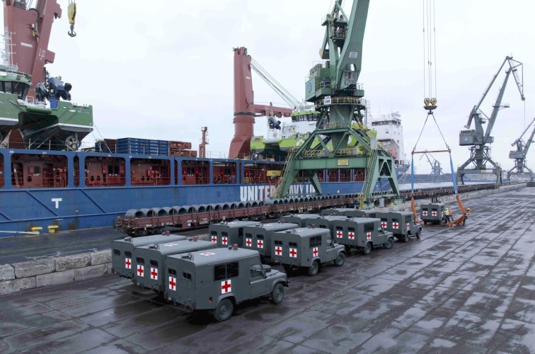 W Porcie Gdańsk przy Nabrzeżu Rudowym wyładowane zostało 21 wojskowych ambulansów z Singapuru. Pojazdy powędrują na Ukrainę.