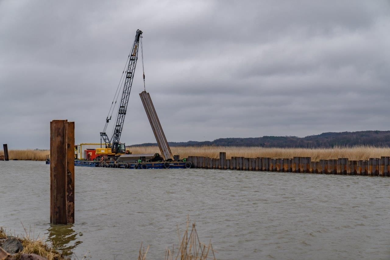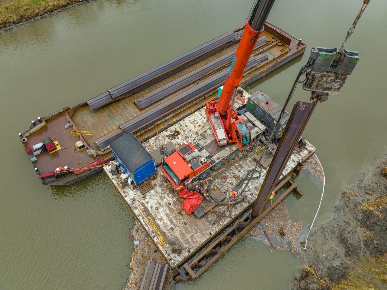 Zainstalowane zostały 4 zestawy do montażu ścianek szczelnych, które pracują z wody, oraz 3 zestawy działające z lądu. Mikropale instalowane są za pomocą 3 kotwiarek, w najbliższym czasie zostaną zmobilizowane 3 kolejne, które będą kotwiły ściankę z wody.
