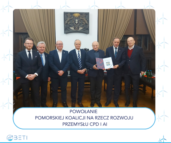 6 lutego 2025 r. na Politechnice Gdańskiej odbyło się spotkanie rozpoczynające współpracę w ramach Pomorskiej Koalicji Przemysłu AI i Centrów Przetwarzania Danych (CPD), zainicjowane przez Bałtycki Instytut Transformacji Energetycznej (BETI).