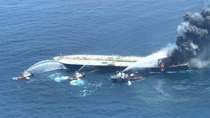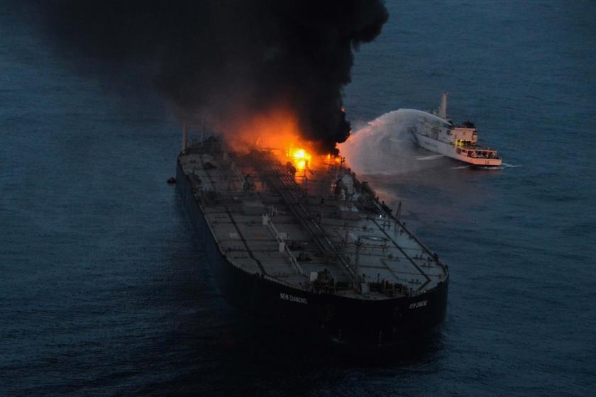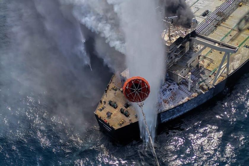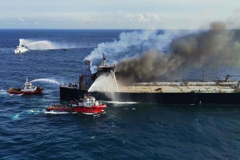 Cztery holowniki, trzy okręty marynarki wojennej Sri Lanki i cztery okręty indyjskie walczą z ogniem MT New Diamond od czwartku.