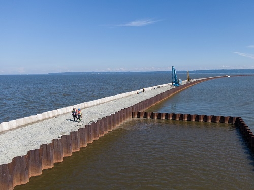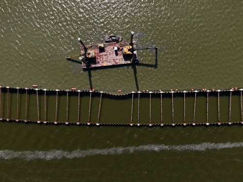 – Obecnie kończymy prace kafarowe zasadnicze, ale przed nami dużo innej pracy, by wykonać przekrój grodzy w całości. „Na gotowo” mamy wykonane ponad 20 procent obwodu wyspy, który mierzy koło 5 kilometrów – mówi Mariusz Sasin, zastępca dyrektora kontraktu do spraw budowy wyspy z konsorcjum NDI/Besix, które wykonuje przekop.