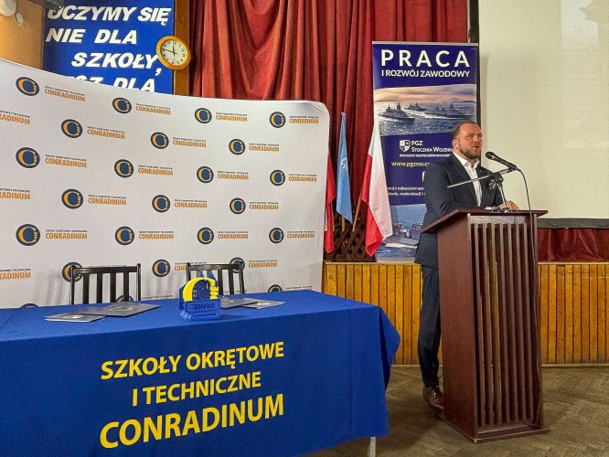 Z myślą o kształceniu przyszłych kadr, stocznia podpisała umowę patronacką z Zespołem Szkół Okrętowych i Ogólnokształcących w Gdańsku „Conradinum”. Patronat objął uczniów kształcących się w zawodzie mechatronik. Współpraca z placówką obejmuje praktyczną naukę zawodu realizowaną na terenie gdyńskiej stoczni, wsparcie merytoryczne w procesie kształcenia, modernizację stanowisk dydaktycznych oraz możliwości zatrudnienia najlepszych absolwentów. Ma być to inwestycja w przyszłość, tak zakładu stoczniowego, jak i tych młodych ludzi, którzy mogą związać swoją karierę zawodową i tym samym przyszłość w w rozwijającym się przemyśle stoczniowym.