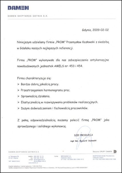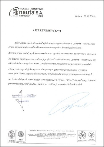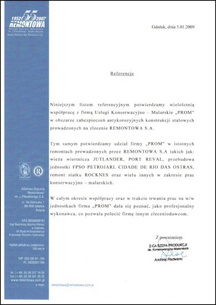 Na dzień dzisiejszy firma dzięki wysokim kwalifikacjom nadzoru oraz dużemu doświadczeniu pracowników sprostać może praktyczne każdemu \"wyzwaniu \" w branży konserwacyjno - malarskiej.