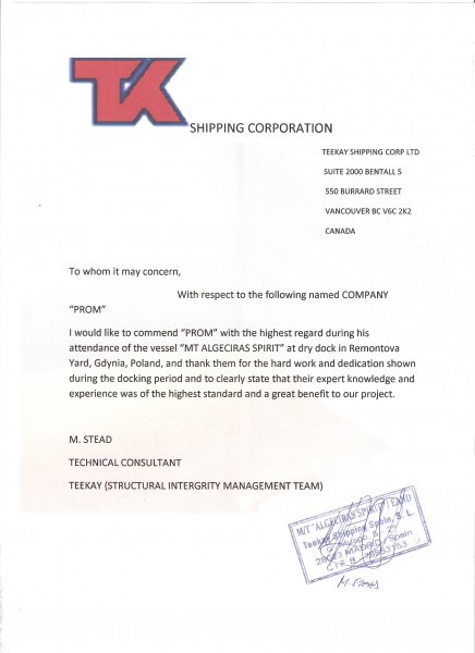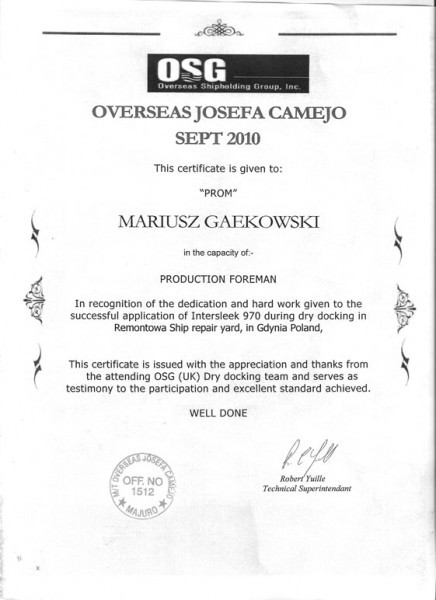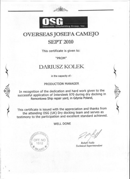 Kierownicy robót posiadają bogate i długoletnie doświadczenie zdobyte w stoczniach polskich i europejskich, pracując przy realizacji skomplikowanych produkcji. Zdobyte doświadczenie owocuje przy realizacji naszych zleceń. Na dzień dzisiejszy przy realizacji większych zadań zatrudnia od 80 - 100 wykwalifikowanych, doświadczonych pracowników.