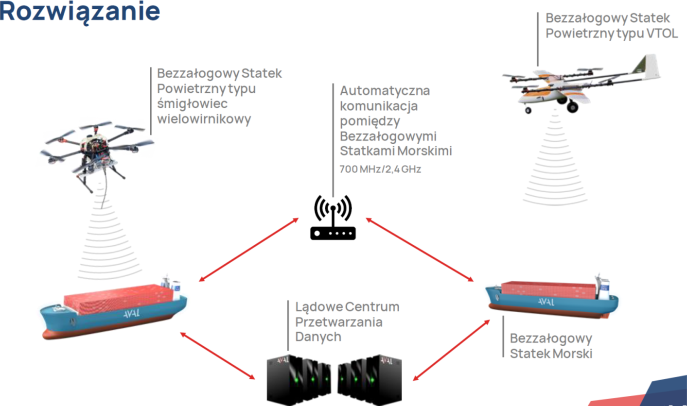 Technologia Bezzałogowych Statków Morskich (BSM). Sercem BSM jest komponent przeciwdziałający zderzeniom i system komunikacji z Bezzałogowym Statkiem Powietrznym (BSP).