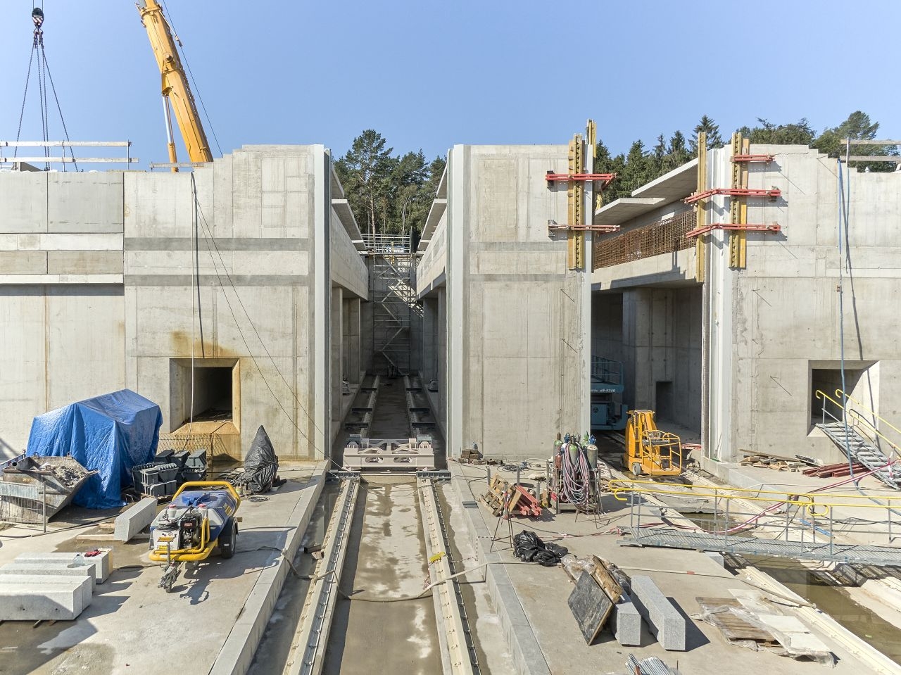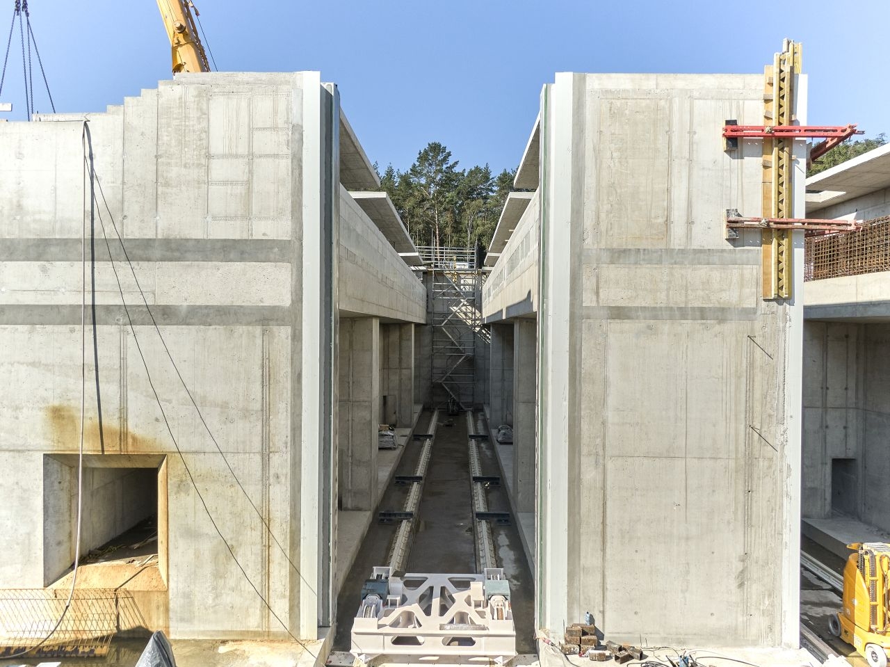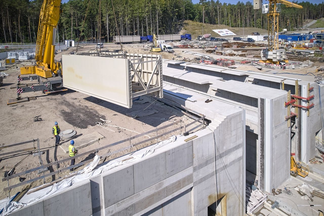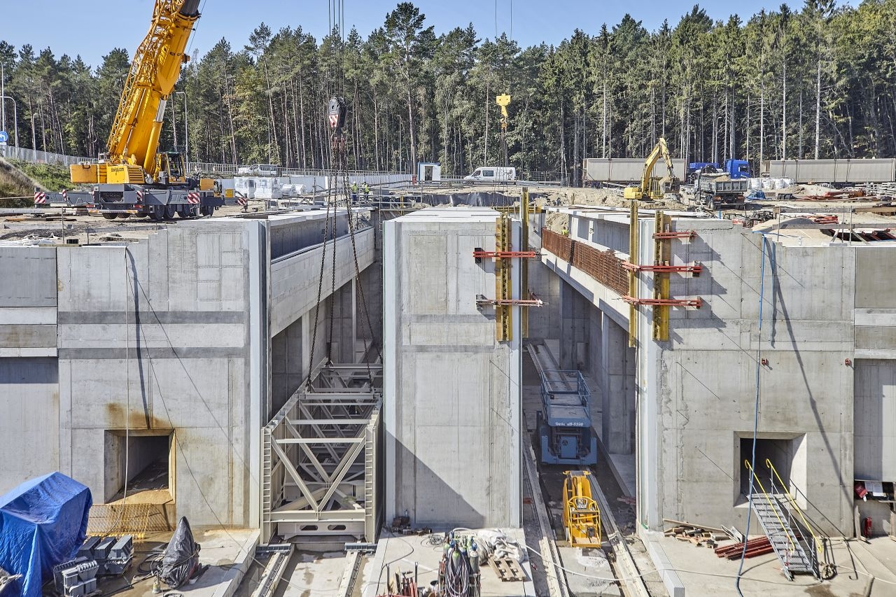 – Jesteśmy w końcowej fazie realizacji kieszeni południowej. Za chwilę ukończymy kanał obiegowy. Z końcówką września rozpoczniemy budowę ostatniego elementu kieszeni południowej – budynku napędowni, obiektu w którym będzie znajdywała się cala hydraulika i automatyka odpowiedzialna za ruch obu bram – powiedział Mariusz Janczewski, zastępca dyrektora projektu – konsorcjum NDI/Besix. – Mocno zaawansowane są też prace żelbetowe związane z realizacją ścian obudowy głównej śluzy. Rozpoczęliśmy również realizację oczepu, czyli finalnego elementu wykończeniowego całej konstrukcji bramy, na którym zostanie zamontowane wyposażenie hydrotechniczne.