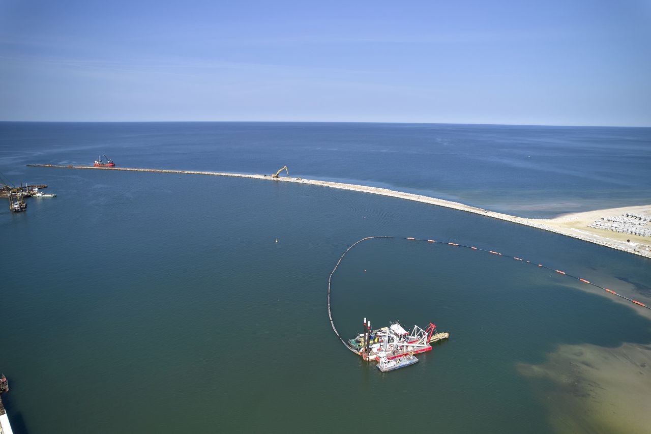 Tempo robót nie zwalnia i kolejne miesiące zapowiadają się równie intensywnie. Planowane jest na przykład zakończenie prac kafarowych na obu falochronach czy montaż pachołów ściennych w kanale żeglugowym. Na sztucznej wyspie wciąż będą prowadzone prace związane z pogrążaniem ścianek szczelnych, montażem ściągów, wykonywaniem geotub czy robotami czerpalnymi oraz zasypem grobli wyspy.