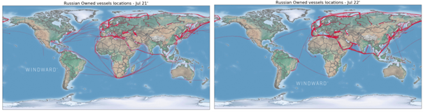 Figures 1 & 2: Russia-owned/affiliated vessels in July 2021 vs. July 2022