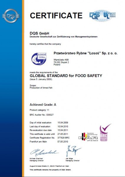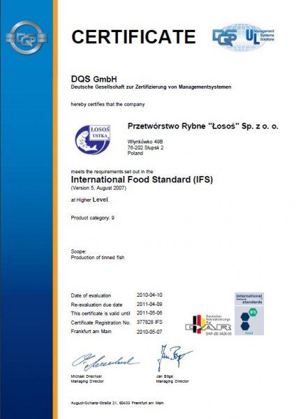Aktualnie Przetwórstwo Rybne „ŁOSOŚ” to jeden z czołowych producentów konserw rybnych w Polsce. Dzięki sprawnemu i skutecznemu zarządzaniu stał się niekwestionowanym liderem w produkcji konserw rybnych i jest dziś uznawany przez wielu za wybitnego specjalistę w tej dziedzinie. Dzienna produkcja to ponad 250.000 szt. konserw rybnych. „ŁOSOŚ” to innowacyjny zakład posiadający zaawansowane technologicznie linie produkcyjne, własną chłodnię, duży magazyn oraz własną oczyszczalnię ścieków. Przetwórstwo spełnia wymogi najwyższych standardów jakości. Posiada certyfikaty IFS i BRC oraz spełnia wymogi systemu HACCP.