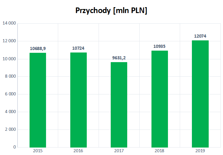 Tabela przedstawia wartość przychodów z całokształtu działalności przemysłu stoczniowego w Polsce na przestrzeni lat 2015 – 2019.