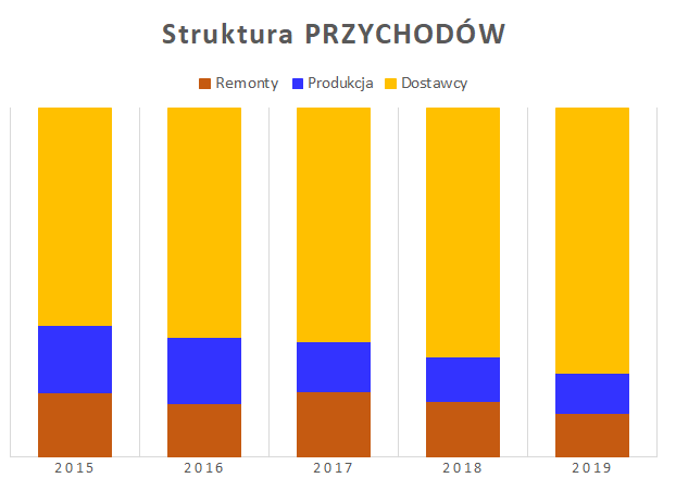 Ten uproszczony podział nie w pełni odzwierciedla szczegółowo faktyczny obszar realizowanych przychodów, jednak niezmieniona metodologia systematycznie prowadzona od wielu lat pozwala na dostrzeżenie rysujących się tendencji, dla których oszacowane wartości bezwzględne są jedynie pewnym przybliżeniem pozwalającym na przybliżone procentowe wyszacowanie udziałów poszczególnych grup. Jednocześnie na wykresie przedstawiającym w formie graficznej wartości podane w tabeli został sformatowany w taki sposób, aby całokształt przychodów danego roku był reprezentowany jako 100%, jednakowo dla wszystkich okresów rocznych. W ten sposób częściowo są niwelowane odchylenia wynikające z uproszczonego podziału zastosowanego przy szacowaniu przychodów o czym była mowa wyżej. Zdając sobie sprawę z tak zakreślonych warunków celem analizy nie jest rozpatrywanie i porównywanie bezwzględnych wartości liczbowych przychodów poszczególnych grup, ale raczej dostrzeżenie tendencji rysujących się pomiędzy nimi w czasie. Można zaobserwować ponad 20% trend wzrostowy udziału dostawców w całokształcie przychodów przemysłu stoczniowego w Polsce. W pewnym sensie trend ten potwierdza, że firmy kooperujące są w stanie dostarczyć więcej wyrobów i usług niż są w stanie zaabsorbować łącznie stocznie produkcyjne i remontowe w Polsce. Dlatego kooperanci zaczęli poszukiwać odbiorców wśród stoczni zagranicznych, co pozwala na systematyczne zwiększanie poziomu sprzedaży.
