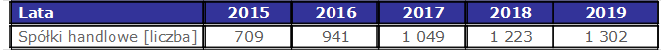 Tabela przedstawia liczbę spółek handlowych zarejestrowanych jako prowadzące działalność gospodarczą w sektorze stoczniowym na przestrzeni lat 2015 – 2019.