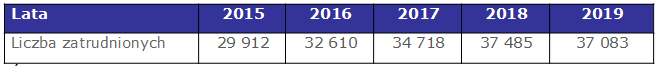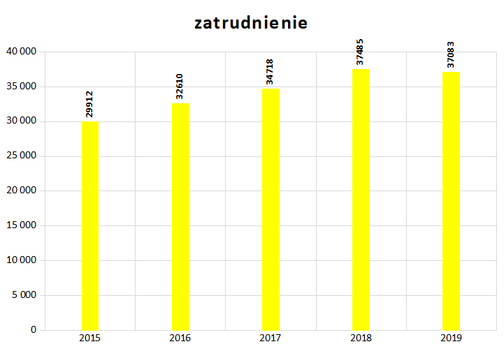Od 2015 roku utrzymuje się już stały, kilkuprocentowy wzrost zatrudnienia osiągając w 2018 roku poziom około 37,5 tysiąca osób, z niewielkim 1% spadkiem w 2019 roku ciągle jednak powyżej 37 tysięcy zatrudnionych. Poziom ponad 37 tysięcy jest najwyższy w całym XXI wieku (nie licząc roku 2001), ponieważ nigdy wcześniej nie przekroczył 36 tysięcy, a w 2009 roku spadł nawet do 23.402 zatrudnionych.