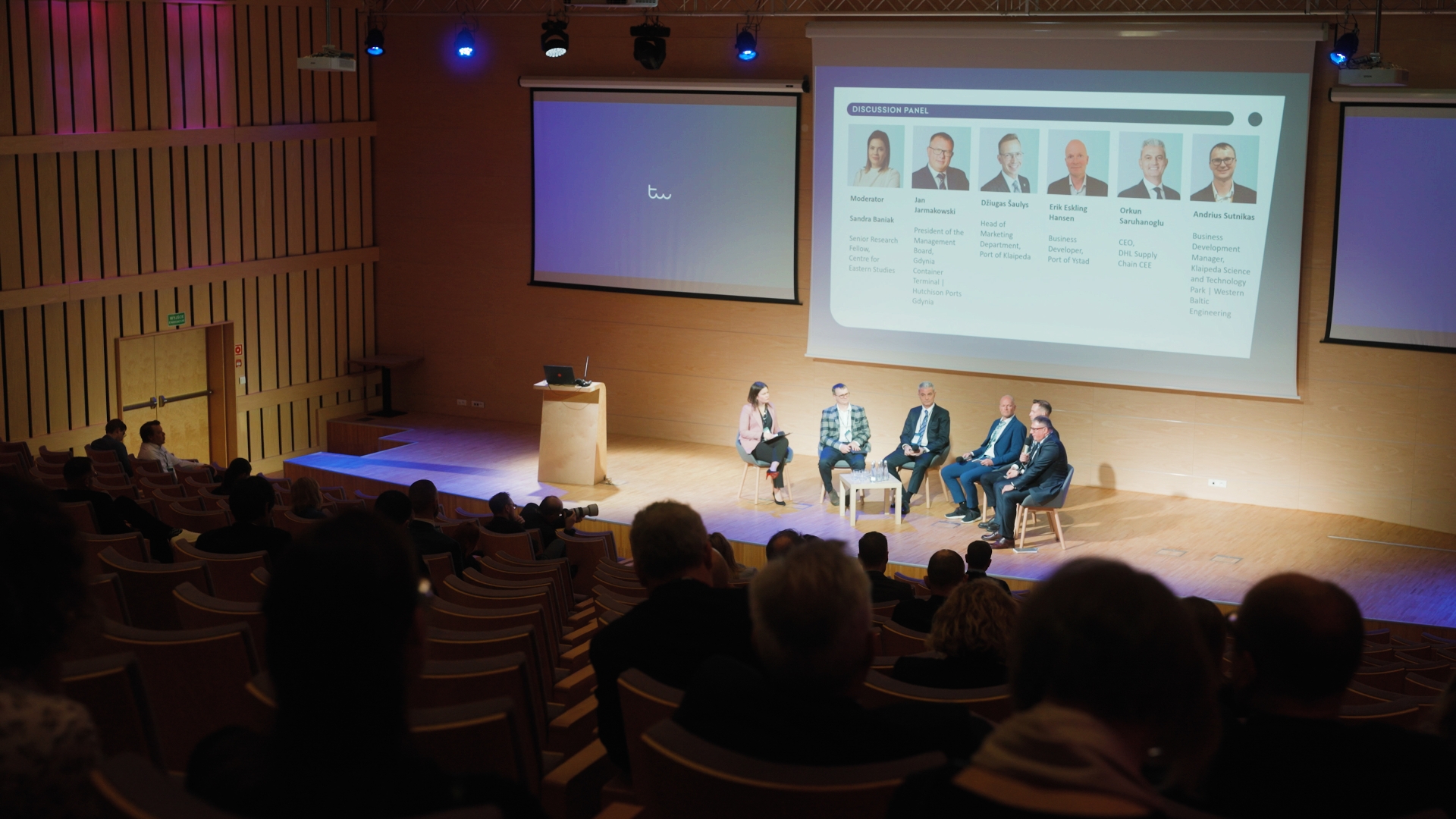 Dziugas Šaulys (Port Kłajpeda) omówił projekt budowy pięciu stacji OPS oraz wprowadzenie zielonej floty. Erik Eskling Hansen reprezentujący Port Ystad zaprezentował nowoczesny terminal ro-ro, a Orkun Saruhanoglu, dyrektor generalny DHL Supply Chain CEE podkreślił, że w Europie jedynie 2,3% ciężarówek jest elektrycznych, co pokazuje długą drogę do pełnej elektryfikacji sektora.