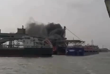 Reportedly, a conveyor belt caught fire in the grain terminal.