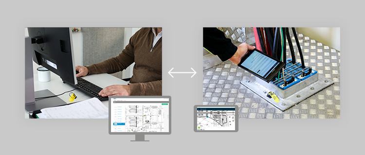 Kierownik produkcji przesyła zlecenie pracy do inspektora jakości, który za pomocą aplikacji mobilnej skanuje znacznik identyfikacyjny. Zostaje przeprowadzana kontrola jakości, po której zostają wystawione zatwierdzenia lub nowe zlecenia pracy. Wszystkie czynności zostają opisane w dokumentacji dotyczącej oceny jakości. System zawiera aktualne raporty o stanie, dzienniki aktywności oraz pełny rejestr przepustów kablowych i rurowych.