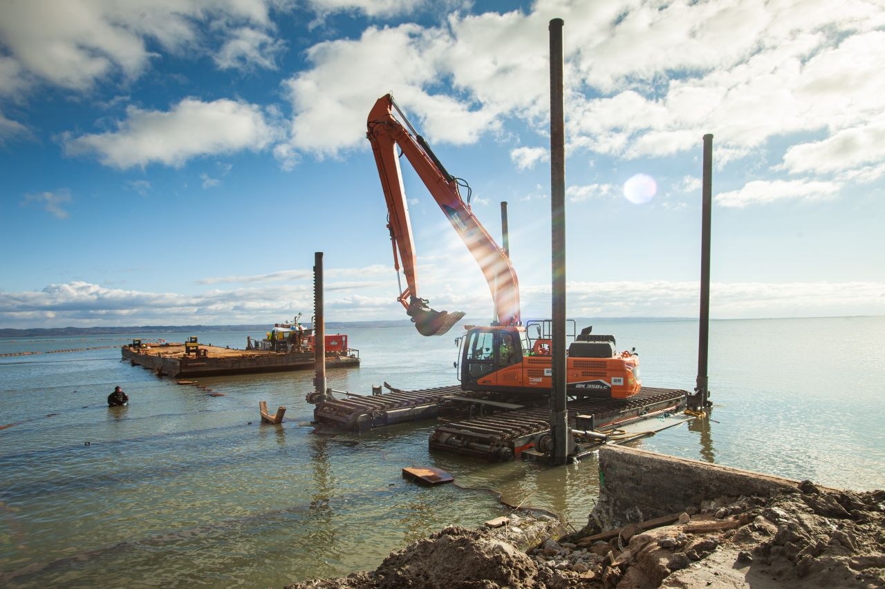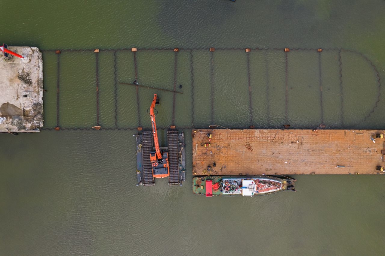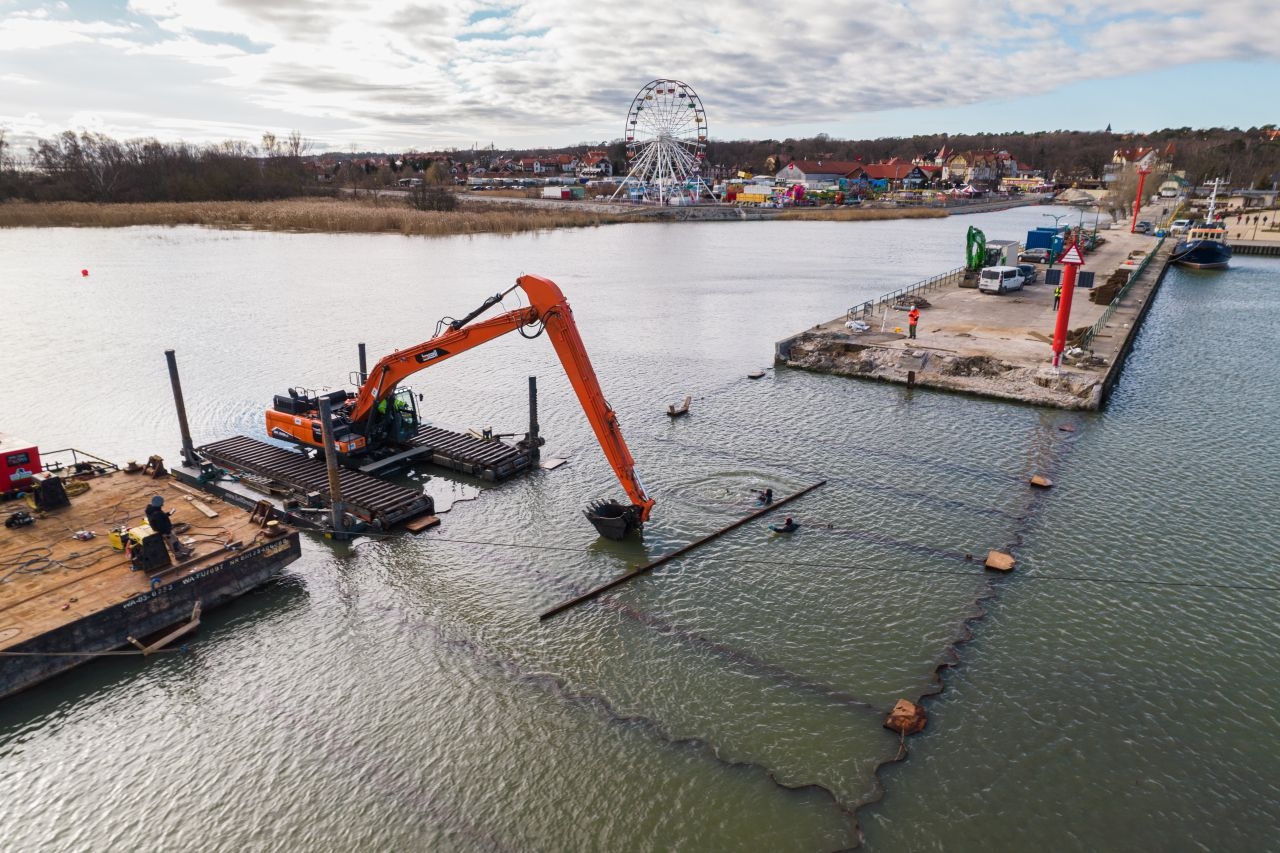 – W ramach przedsięwzięcia mamy do zrealizowania pirs wykonany w konstrukcji grodzy ze ścianek szczelnych. Obecnie zainstalowaliśmy nie tylko wszystkie ścianki szczelne, a także kleszcze i ściągi. Można powiedzieć, że zasadniczy etap konstrukcji grodzy mamy za sobą. Jesteśmy gotowi do rozpoczęcia robót zasypowych – mówi Paweł Śpiewak, kierownik robót hydrotechnicznych z firmy NDI, generalnego wykonawcy prac.