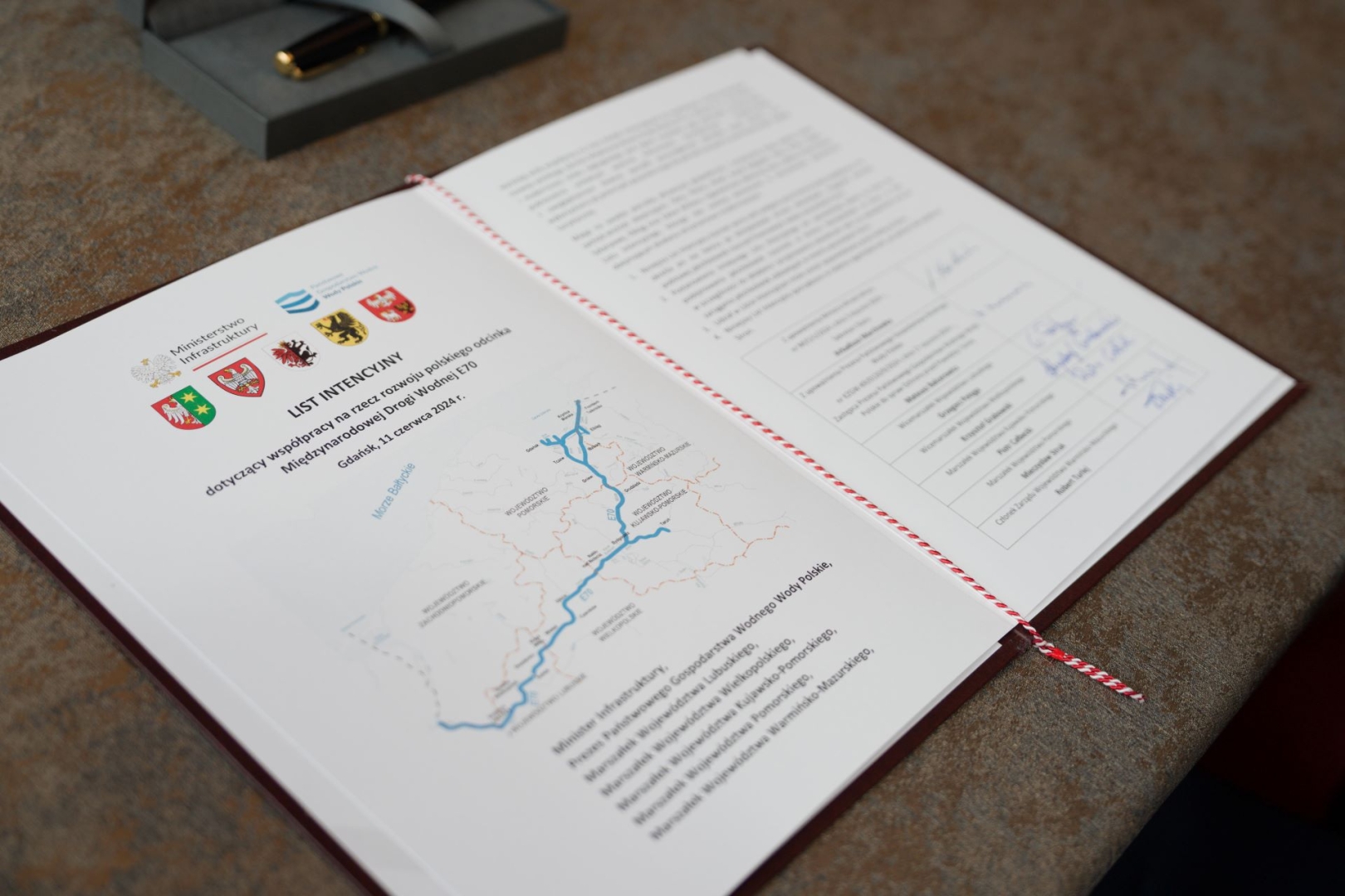 Ministerstwo Infrastruktury wspólnie z samorządami pięciu regionów oraz Wodami Polskimi będą działać na rzecz rozwoju transportu i turystyki wodnej. Chodzi o przywrócenie żeglugi turystycznej i towarowej na polskim odcinku Międzynarodowej Drogi Wodnej E70. List intencyjny w tej sprawie został podpisany 11 czerwca 2024 r. w Gdańsku. List intencyjny podpisali m.in. sekretarz stanu w Ministerstwie Infrastruktury Arkadiusz Marchewka i marszałek województwa pomorskiego Mieczysław Struk.