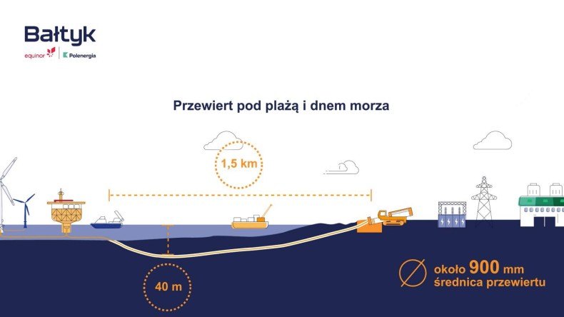 Equinor i Polenergia rozpoczęły prace przygotowawcze w obszarze tzw. landfallu, czyli w miejscu wyjścia kabli eksportujących prąd generowany z morskich farm wiatrowych Bałtyk 2 i 3 na ląd. Przewiert pozwoli poprowadzić kabel energetyczny i wyprowadzić moc generowaną przez morskie farmy wiatrowe. Prace nad samym przewiertem, które rozpoczną się w marcu, będą prowadzone pod ziemią, metodą bezpieczną dla środowiska i otoczenia.