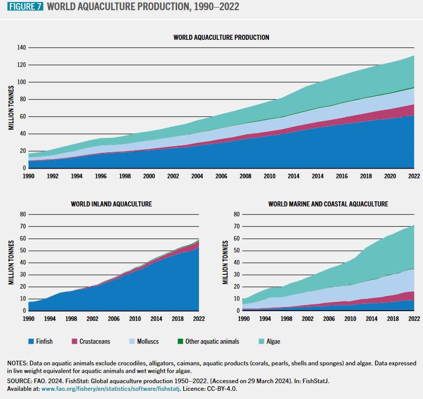 Po raz pierwszy w historii produkcji żywności hodujemy więcej ryb i owoców morza niż pozyskujemy z połowów. Jednocześnie na morzach i oceanach obserwujemy przełowienie dzikich stad ryb. Odnawianie stad ryb jest coraz rzadziej spotykane. Zostało to podkreślone w wydaniu raportu FAO „The State of World Fisheries and Aquaculture 2024” (SOFIA) z 2024 r.