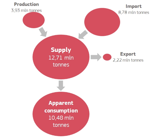 Handel rybami i owocami morza wewnątrz UE wyniósł łącznie 5,8 mln ton i 31,8 mld EUR, co stanowi 45% całkowitej wartości handlu towarami spożywczymi. Podczas gdy wielkość dostaw pozostała stabilna, w ciągu ostatniej dekady ich rzeczywista wartość wzrosła o 45%. Handel wewnątrz UE przewyższył wartość importu poza UE po raz drugi w ciągu ostatniej dekady. Po raz pierwszy taki przypadek miał w 2021 r. – przypomina się w raporcie „THE EU FISH MARKET”. Edition 2024 r.