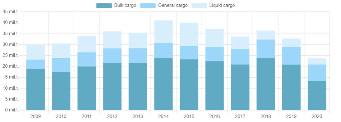 Jednakże roczne obroty ładunkowe portu w Rydze od kilku lat systematycznie spadają. Spory ubytek w ilości przeładowanego towaru można zauważyć między innymi w pechowym, pandemicznym roku 2020.