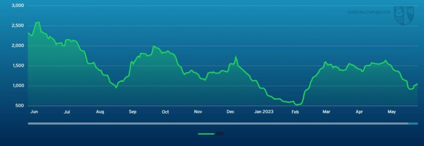 Według notowań indykatora Baltic Dry Index w drugiej połowie maja