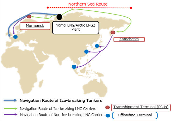 Wśród podmiotów posiadających udziały w tym przedsięwzięciem znajdują się japońskie przedsiębiorstwo energetyczne Mitsui (poprzez Japan Arctic LNG B.V.) oraz państwowa Japońska Organizacja Bezpieczeństwa Metali i Energii (Japan Oil, Gas and Metals National Corporation, JOGMEC). Posiadają wciąż 10% udziałów w projekcie, co miało zagwarantować łącznie 2 miliony ton LNG rocznie. Oprócz tego w stoczni należącej do Mitsui O.S.K. Lines, Ltd. (MOL) zlecono budowę lodołamacza, który miał odgrywać istotną rolę w zapewnieniu bezpieczeństwa transportu gazu drogą arktyczną. Obok sankcji pojawia się również presja, aby podmioty międzynarodowe wycofywały się z współpracy z rosyjskimi firmami z powodu oskarżeń, że w ten sposób finansują wojnę.