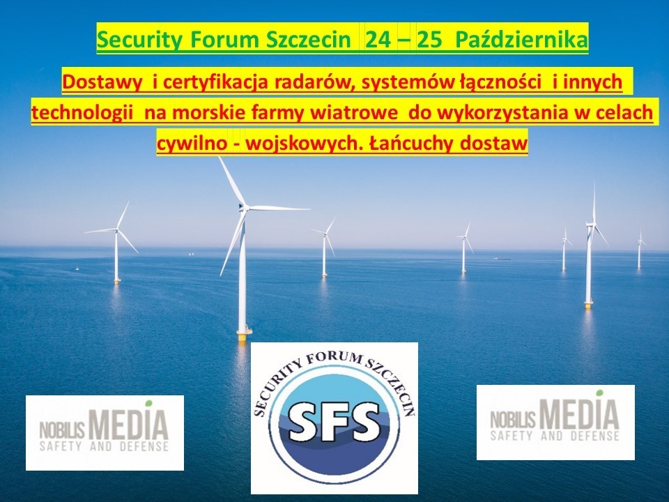 Zapraszamy na konferencję Security Forum Szczecin, której tematem przewodnim będą dostawy i certyfikacja sensorów, radarów, systemów łączności na morskie farmy wiatrowe do wykorzystania w celach cywilno – wojskowych oraz łańcuchy dostaw w Polsce.