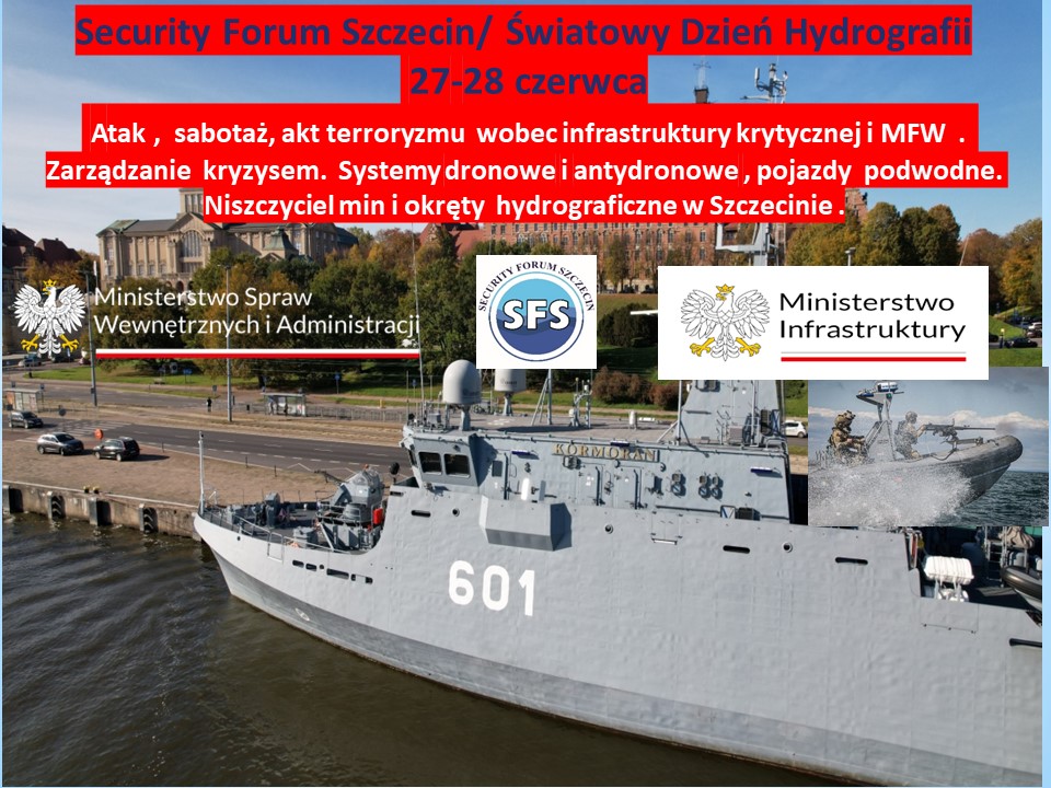 Temat konferencji to Atak, sabotaż, akt terroryzmu wobec infrastruktury krytycznej. Zarządzanie kryzysem. Systemy dronowe i antydronowe, pojazdy podwodne. Okręty MW w Szczecinie.