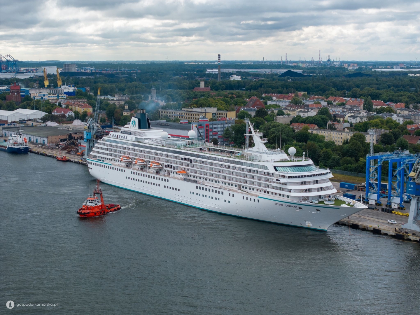 Crystal Symphony, największy w tym roku wycieczkowiec, zawinął do Portu Gdańsk 5 sierpnia. Czekaliśmy na niego od początku sezonu. Mierzy aż 238 metrów długości i 30 m szerokości. Po morzach i oceanach pływa od 1995 roku. To luksusowy, pięciogwiazdkowy pływający hotel, z eleganckimi kabinami, dwoma basenami, spa i centrum fitness, kortem do tenisa, polem do golfa, kasynem, kinem, biblioteką a nawet międzywyznaniową świątynią. Do dyspozycji pasażerów jest osiem pokładów. Na ostatnim z nich, na dziobie statku, ulokowany został specjalny taras widokowy.