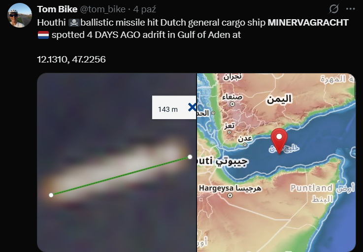 🇳🇱Rescue operations have begun for the Dutch ship MV MINERVAGRACHT, which was recently hit by a cruise missile from Yemeni armed forces in the Gulf of Aden. The tugboat Achilles, accompanied by the French warship Languedoc, has been sent to the scene.