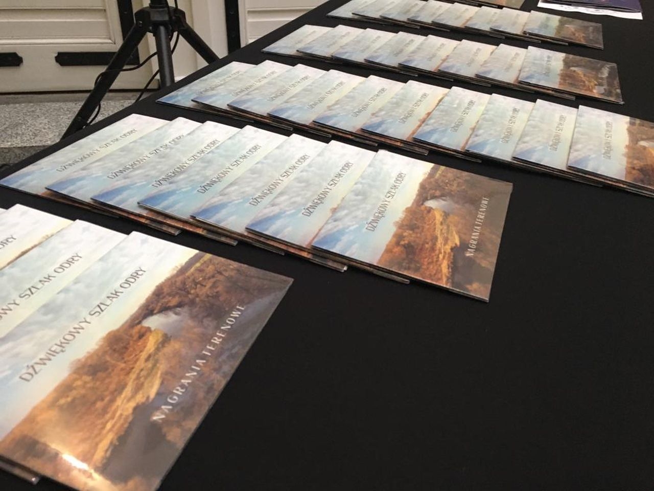 „Dźwiękowy szlak Odry" to specjalna płyta. Jej autor przy pomocy profesjonalnych mikrofonów oraz hydrofonów stworzył dźwiękową mapę Odry. Na płycie słyszymy współbrzmienie człowieka i rzeki, odgłosy przyrody i dźwięki industrialne. Pokazuje to, że Odra jest wspólną przestrzenią ludzi i przyrody. Pragniemy korzystać z jej dobrodziejstw. Zabiegamy o rozwój żeglugi, ale chcemy także zadbać o środowisko naturalne i zachować dziedzictwo kulturowe. Zależy nam, by Odra zawsze rozbrzmiewała harmonią dźwięków. Jak potrafią one być piękne i zaskakujące jednocześnie przekonają się Państwo sami. Dla każdego odwiedzającego płyta gratis.