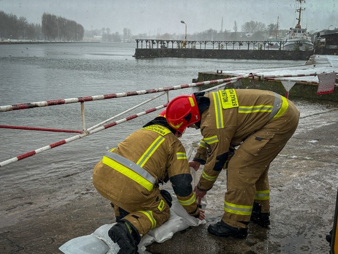 Z powodu silnego wiatru stan wody w porcie w Świnoujściu przekroczył o 40 cm stan alarmow. Jak informują służby prasowe polskiej Marynarki Wojennej, do akcji zostali skierowani strażacy z Komendy Portu Wojennego Świnoujście, którzy wraz z zastępami z Państwowej Straży Pożarnej podejmują wysiłki, aby zabezpieczyć miasto przed skutkami podtopienia.