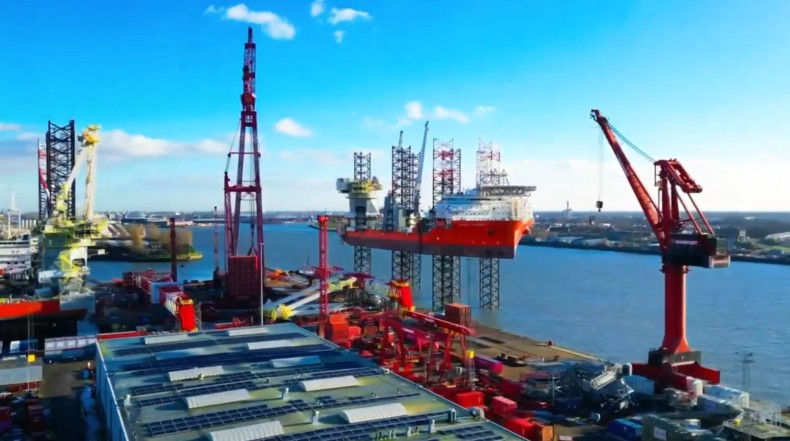 Niezwykły widok mogli przez jakiś czas obserwować mieszkańcy niderlandzkiego Rotterdamu. Nad nabrzeżem stoczniowym górował podniesiony na swoich nogach na maksymalną wysokość 160-metrowy statek Wind Osprey.