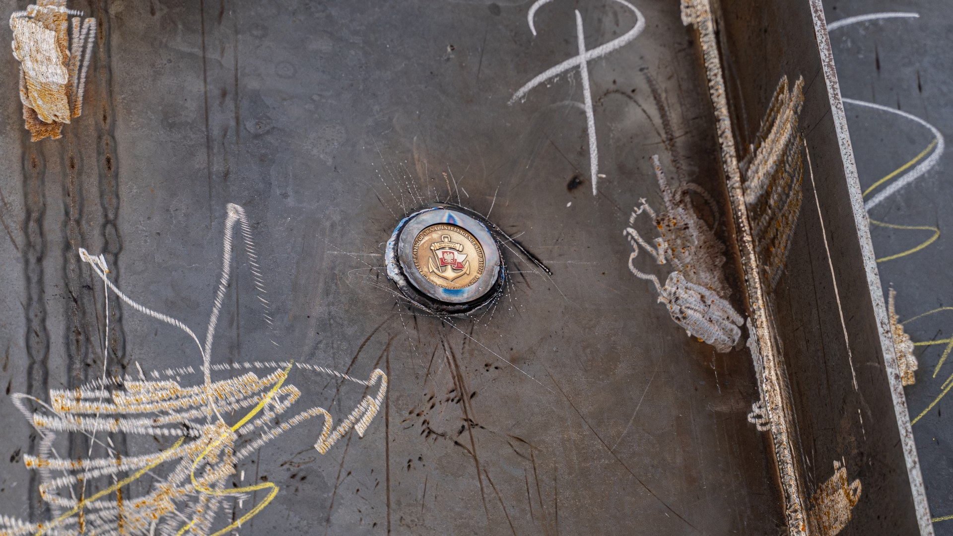 Podczas uroczystości odbyła się symboliczna ceremonia położenia stępki, w trakcie której pamiątkowy medal został przyspawany przez stoczniowców do elementu tworzącego sekcję dolnej części kadłuba. Ten akt nawiązuje do zwyczaju mającego korzenie jeszcze w starożytności, gdy w budowanej jednostce umieszczano monety, co miało zapewnić szczęście tak statku, jak i jego załogi. Następnie dyrektor projektu "Delfin" Krzysztof Radzikowski, kmdr Piotr Skóra, przedstawiciel DNV Paweł Szmigiel oraz reprezentant Saab podpisali dokument potwierdzający ten etap budowy okrętu, co było finalnym aktem całej uroczystości.