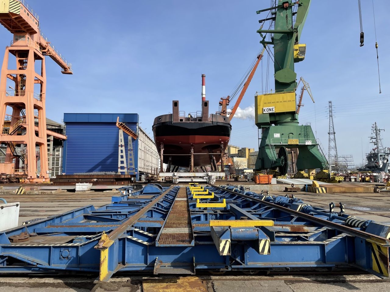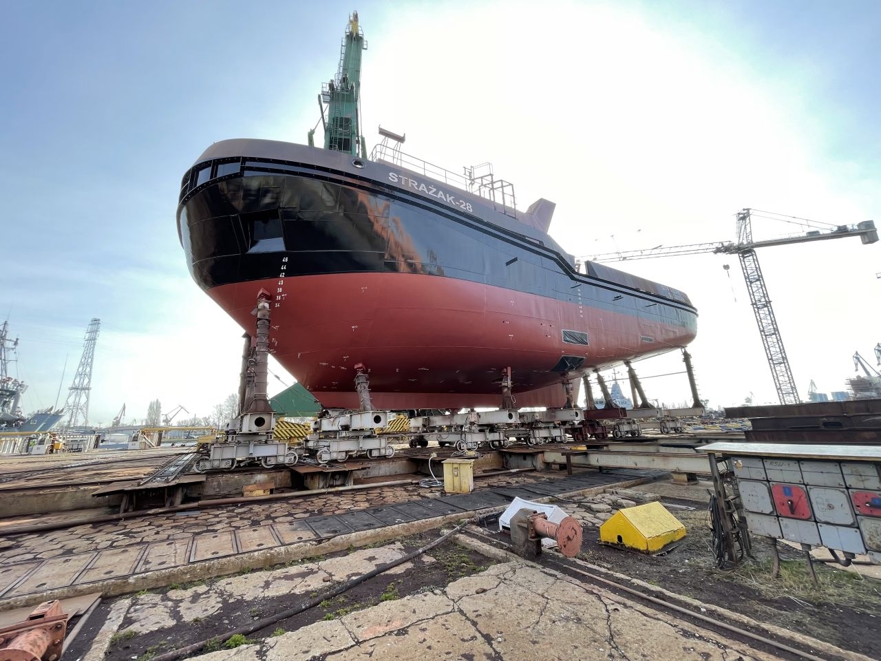 Nowobudowany statek pożarniczy Strażak-28 opuścił właśnie stoczniową halę. Jeszcze w tym roku dołączy do floty statków w Zarządzie Morskich Portów Szczecin i Świnoujście S.A. W najbliższym czasie kadłub jednostki zostanie połączony z nadbudówką. Ze względu na brak możliwości montażu całości w hali, ta część prac zostanie wykonana na zewnętrznym placu.