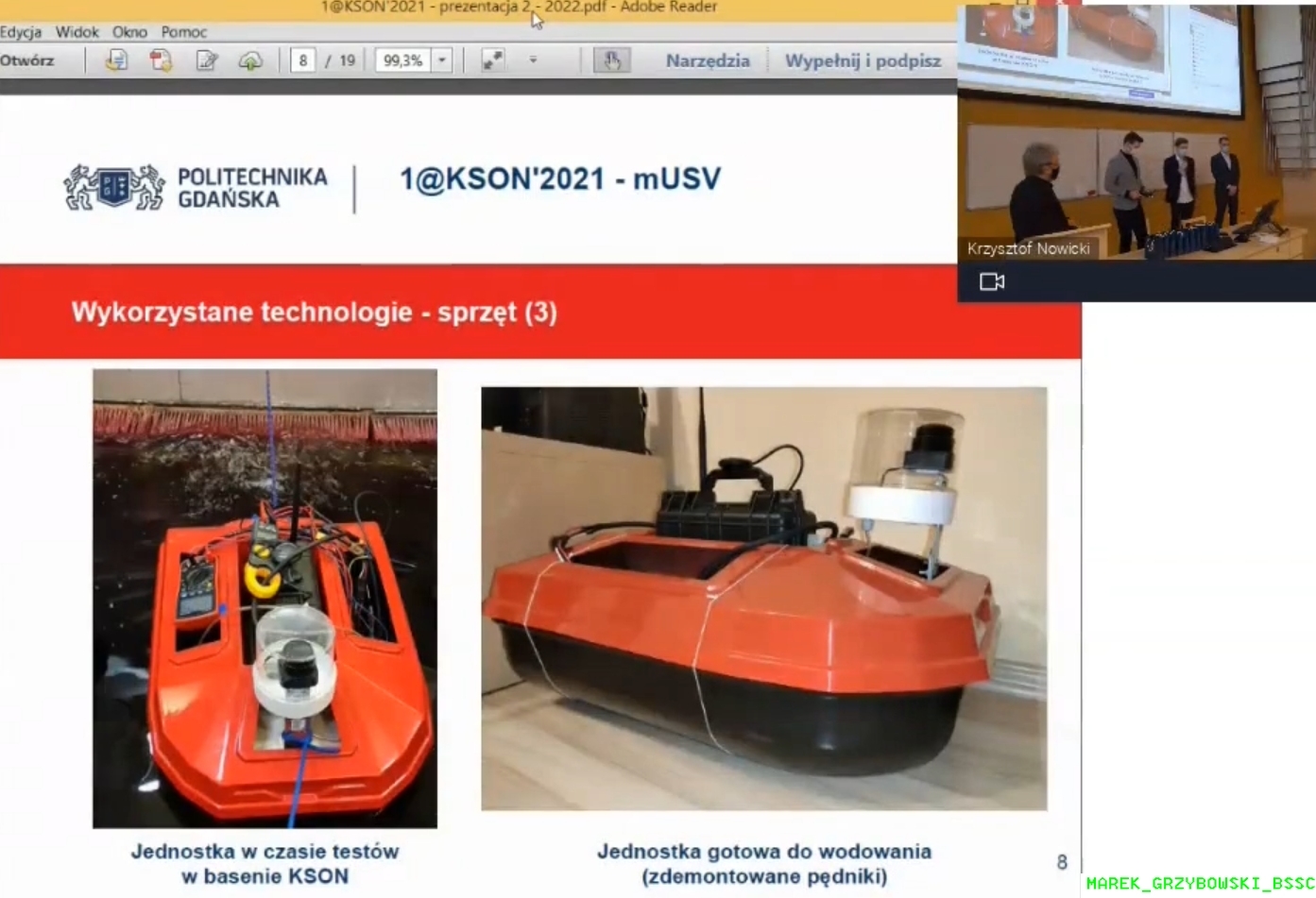 Wśród wyróżnionych opracowań był również autonomiczny mały pojazd pływający. Projekt pt. Mała nawodna jednostka bezzałogowa (mUSV) zdolna do samodzielnego przebycia zaplanowanej trasy realizowana była przez grupę studentów.