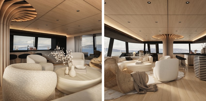 Wszystkie strefy mieszkalne zostały zaprojektowane, z myślą o wolności i łatwości użytkowania. Wnętrze NEXT to miejsce, gdzie eko-innowacja spotyka się z designem, tworząc nową erę w luksusowym jachtingu. To coś więcej niż tylko styl – wnętrza NEXT zapraszają do zwolnienia tempa, ponownego połączenia z naturą i poczucia się jak w domu – na wodzie.