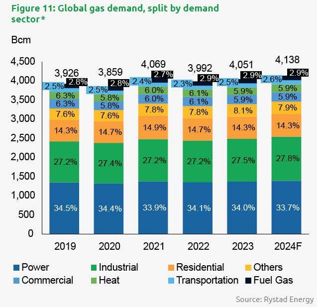 Jarand Rystad, Chief Executive Officer w Rystad Energy zauważa, że „cena gazu ziemnego dla użytkowników końcowych wynosi 10–50 USD/MWh. Jest to znacznie poniżej cen produktów naftowych, które zwykle wynoszą 100 USD/MWh. Gaz ziemny jest również tańszy od węgla w Ameryce i podobnie lub nieco droższy w innych miejscach”. Zwraca uwagę, że „emisja CO2 z gazu stanowi tylko 50% emisji węgla i 68% emisji ropy naftowej na jednostkę energii”.