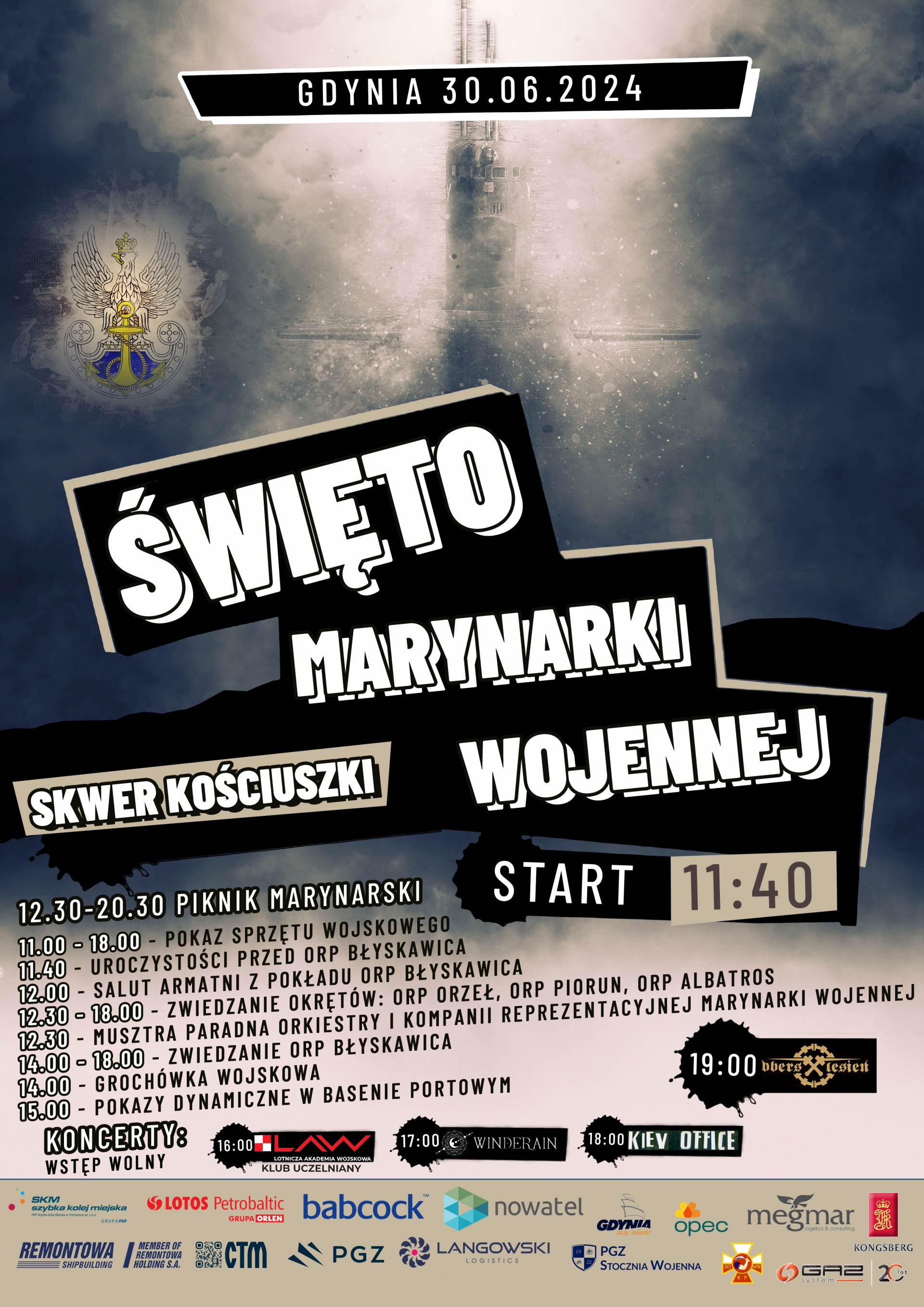 Na ten dzień zaplanowano wystawę sprzętu wojskowego, wykorzystywanego przez siły morskie i inne rodzaje sił zbrojnych. Swoje namioty i stoiska będą miały jednostki i uczelnie wojskowe celem zainteresowanie zagadnieniami militarnymi jak i samą służbą. Odbędą się również pokazy musztry paradnej i działań sił morskich w basenie portowym. Zwiedzającym zostaną udostępnione do zwiedzania pokłady okrętu podwodnego ORP Orzeł, niszczyciela min ORP Albatros oraz małego okrętu rakietowego ORP Piorun.