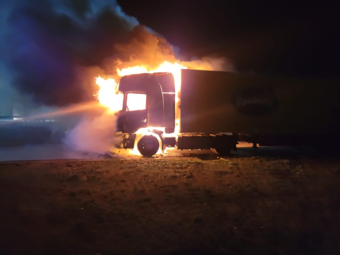 Na miejscu do pracy przystąpiło 9 strażaków i 3 pojazdy pożarnicze. Ogień objął także część naczepy. Pożar ugaszono około 21:40. Nikomu nic się nie stało.