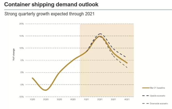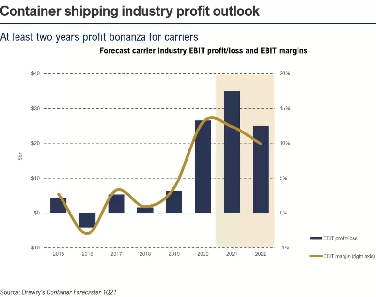 Tiwary przewiduje, że w wyniku spadku dynamiki popytu na kontenery spadnie również dynamika zysków przewoźników oceanicznych i w 2022 roku zbliży się do 10 proc. Będzie więc niższa o 4 proc. niż w 2020 roku.