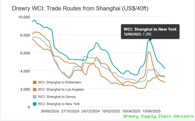 Źródło: Drewry Sypply Chain Advisors, July 29, 2025