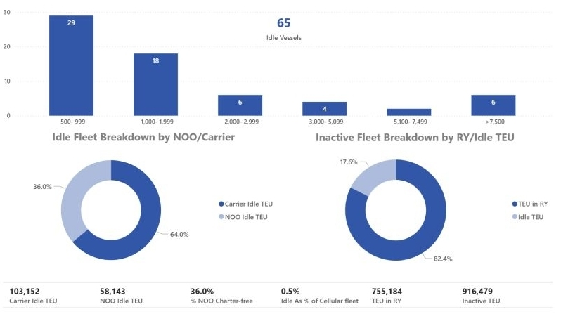 Armatorzy wyłączali z serwisów głównie małe jednostki. W ciągu ostatnich dwóch tygodni mniejsze statki pozostawały głównymi celami komercyjnego postoju na biegu jałowym. Jednostki poniżej 1 000 TEU stanowiły 45% całkowitej liczby, podczas gdy statki w kategorii 1 001-3 000 TEU stanowiły kolejne 37% - ustalił Alphaliner.