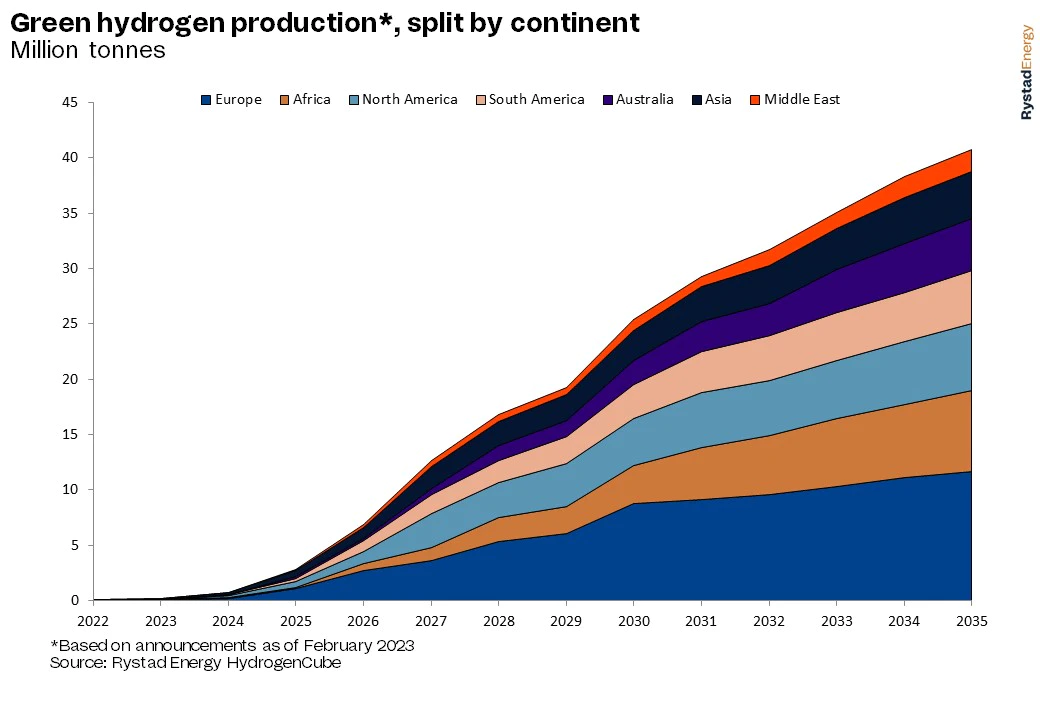 Jak się okazuje, główną przeszkodą w budowie projektów mogą być decyzje inwestorów. Według badań Rystad Energy, z planowanych 114 GW zaledwie 13 MW w projektach uzyskało do tej pory ostateczną decyzję inwestycyjną. W dalszym ciągu Afryka przyciąga inwestorów ze względu na dostęp do gruntów, niskie koszty pracy i potencjał produkcji energii z OZE. Niemcy podpisały umowy na odbiór energii z Namibią i RPA. Aby ułatwić import, Niemcy uruchomiły niedawno projekt aukcyjny o nazwie H2Global o wartości 900 mln euro dający dla zwycięzców gwarancje zakupu wodoru od producentów wodoru spoza Europy. Według analizy Rystad Energy, państwa afrykańskie są obecnie w najlepszej pozycji do dostarczania zielonego wodoru w wolumenach wymaganych przez Europę. Norwegia przyjęła inne podejście, zapewniając 8 milionów dolarów finansowania dla Scatec, norweskiej firmy rozwijające projekty zielonego wodoru w Egipcie.