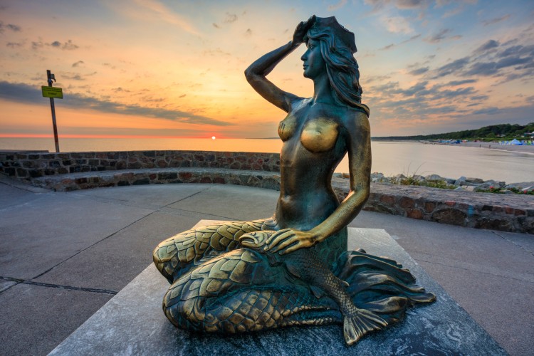 Pomnik syrenki, na stałe kojarzony z usteckim portem i przylegającymi mu falochronami został tymczasowo przeniesiony w okolice Kapitanatu Portu, obok Pomnika „Ludziom Morza”. Zmiana miejsca związana jest z rozpoczęciem szeroko zakrojonych prac modernizacyjnych w porcie.