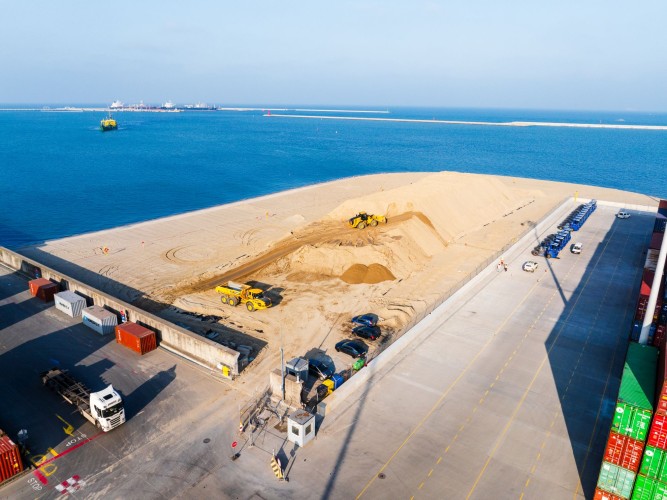 usypania 21 hektarów terminala potrzebna będzie ogromna ilość piasku.